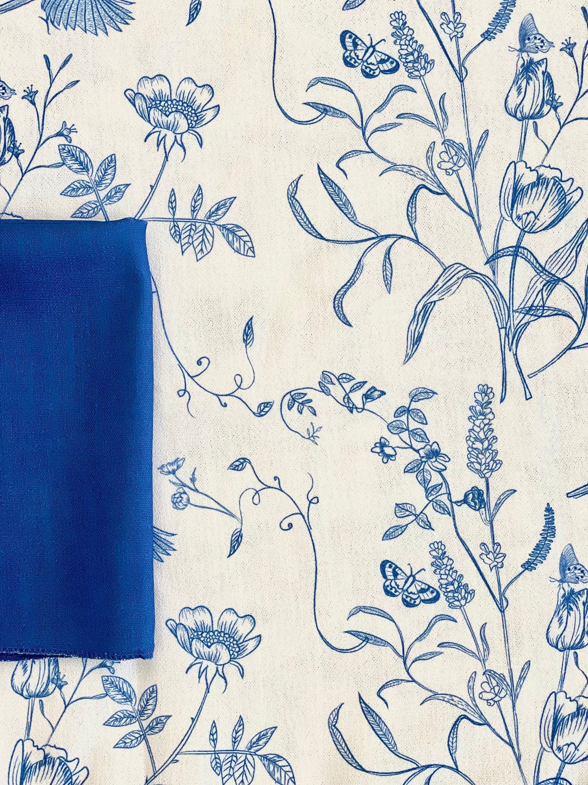 Pairs beautifully with the Blue Victorian or blue floral tablecloth