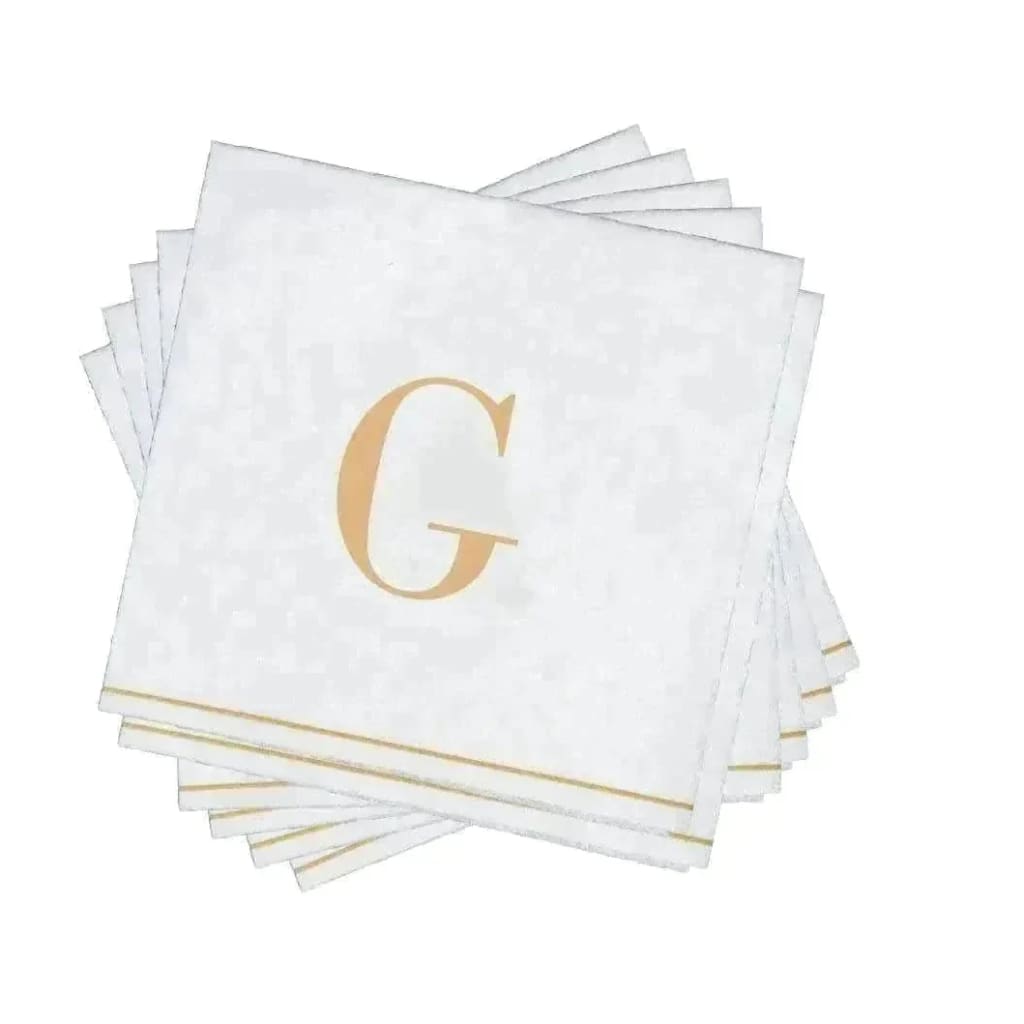 Letter G Gold Monogram Cocktail Paper Disposable Napkins...